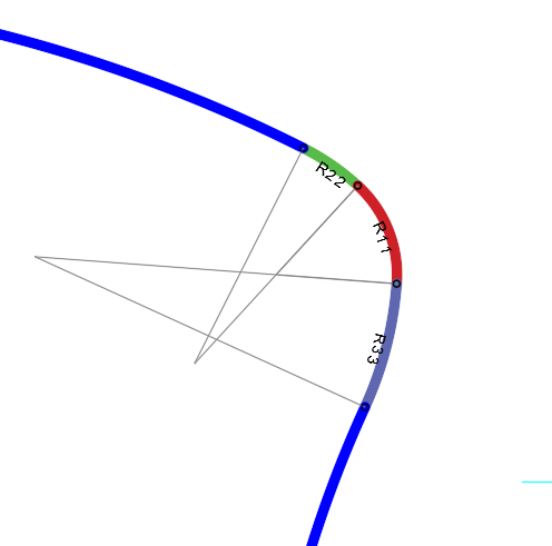 3 center curve R1:R2:R3=22.00:11.00:33.00=(2:1:3)