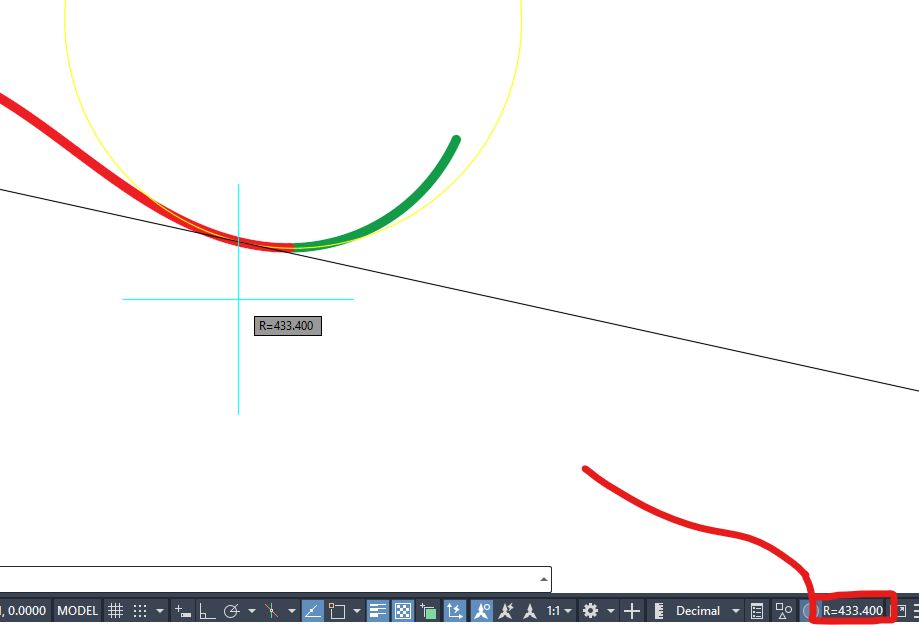 Potrebno je odabrati kružni luk ili klotoidu kako bi se pokrenuo interaktivni mod u kome dok se pomera kursor, pomera se i odgovarajući položaj tangente.