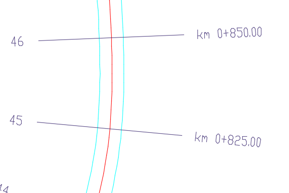 XSECDRAWLINES konstruiše linije (noževe) poprečnih profila duž odabrane osovine iz odabranog sačuvanog seta poprečnih profila.
