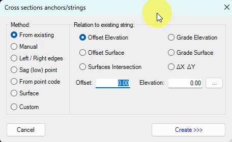 XSECSTRINGS komanda otvara dijalog - prozor sa opcijama za postavljanje STRINGova u poprečne profile.