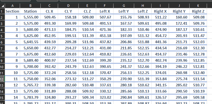 EDGESCOORDS komanda ispisuje koordinatne podatke o ivicama kolovoza, na osnovu odabranih featurelinija u modelu.