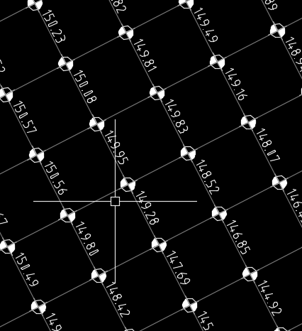 GRIDELEVS komanda za odabranu površ (surface), prikazuje visinske kote prema čŤvorovima grid-u sa definisanim dužinama kvadratne mreže - grida.