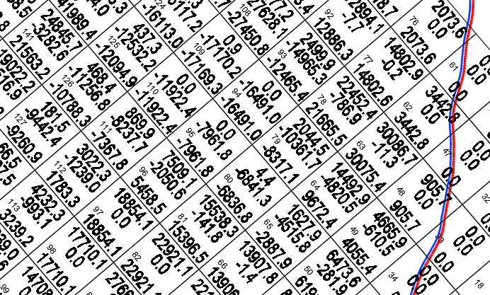 GRIDVOLCALC komanda za odabranu zapreminsku površ (volume surface), prikazuje količŤine nasipa i iskopa prema grid-u sa definisanim dužinama kvadratne mreže.